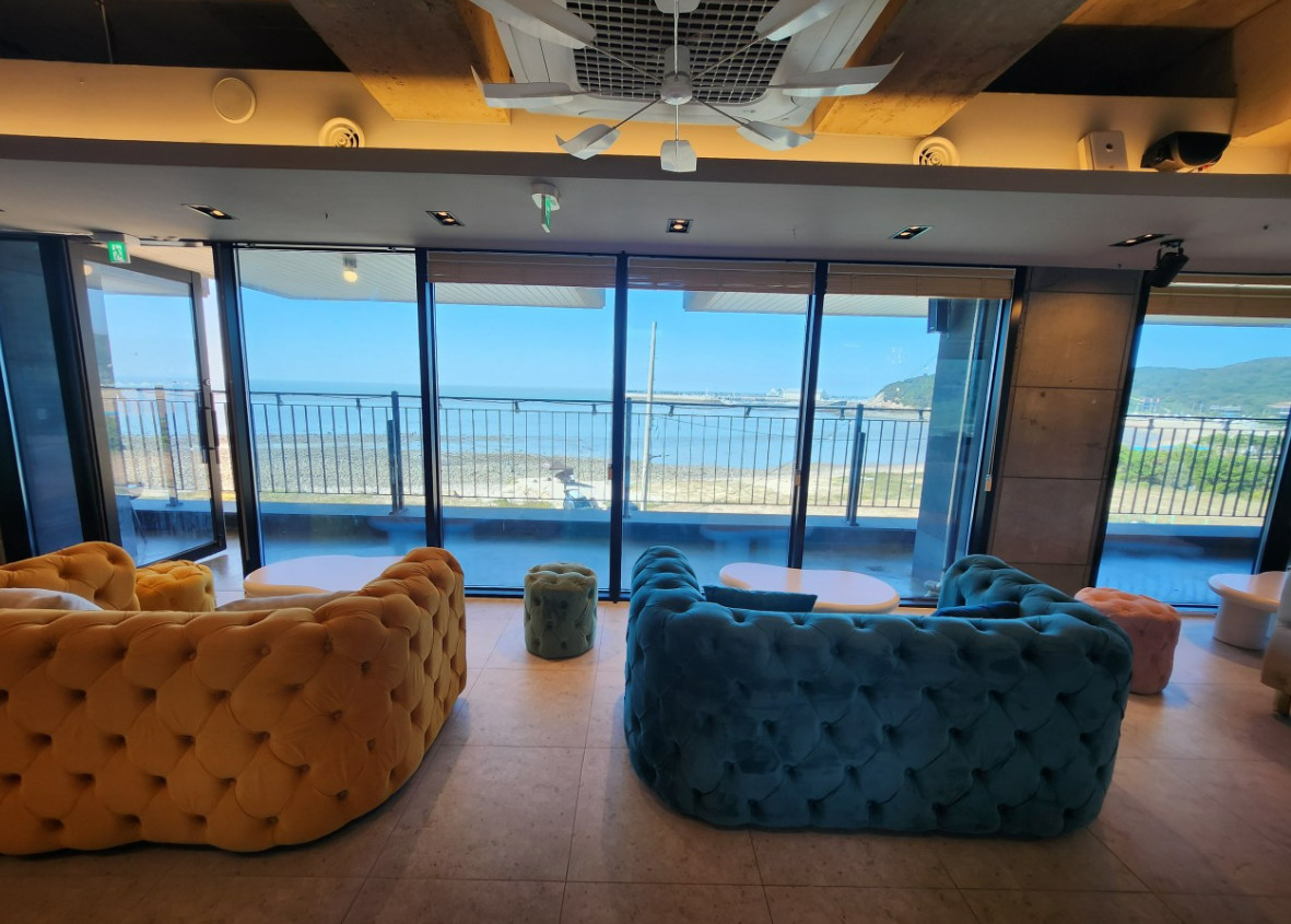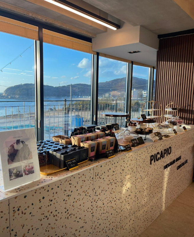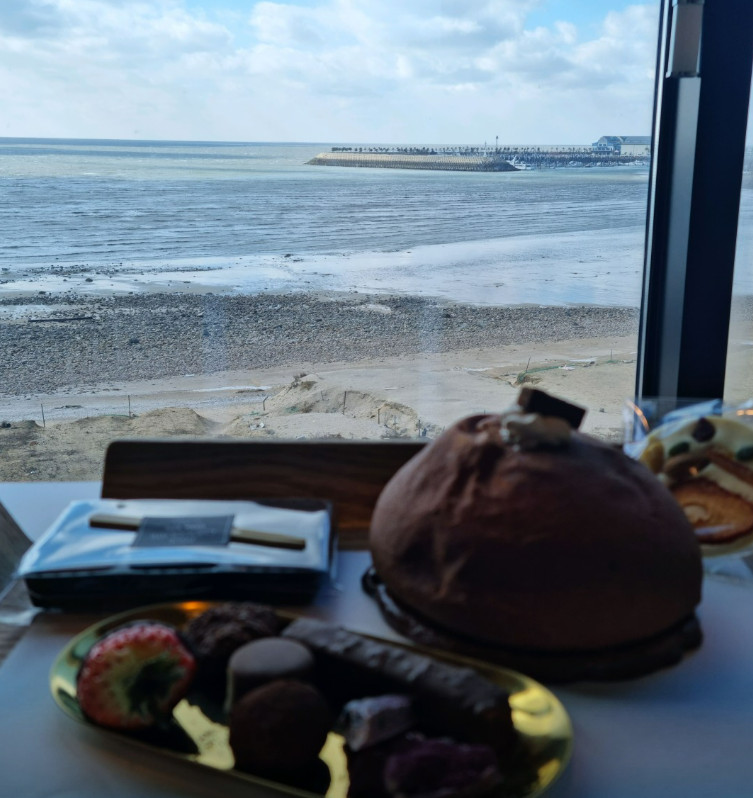 오션뷰가 너무 멋졌습니다. 창가에 앉아 초콜릿과 커피를 즐기니 힐링이 되는 기분이었어요.
