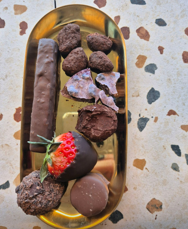 수제 초콜릿이 정말 고급스러워요. 다크 초콜릿이 쌉싸름하면서도 깊은 맛이 있어서 만족스러웠습니다.