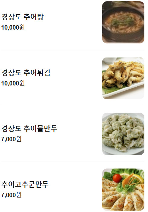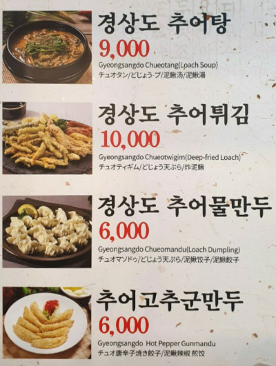 극한직업 80년 전통 경상도 추어탕 맛집의 메뉴