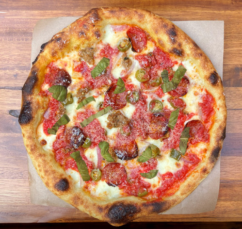 매콤한 맛을 좋아하는 분들에게 추천하는 피자로, 수제 소시지와 초리조, 할라피뇨가 조화를 이룹니다. 씹을 때마다 톡 쏘는 매운맛이 입안을 감싸며, 모짜렐라와 프로볼로네 치즈가 녹아내려 더욱 깊은 풍미를 느낄 수 있습니다. 바삭한 도우 덕분에 씹는 재미도 뛰어나며, 매콤한 소시지와 치즈가 조화를 이루어 중독적인 맛을 자랑합니다.