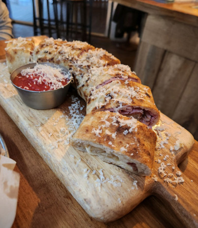 스트롬볼리는 안에 치즈가 가득하고, 겉은 바삭해서 너무 맛있었어요. 토마토 소스에 찍어 먹으니 더욱 풍미가 살아나더라고요.