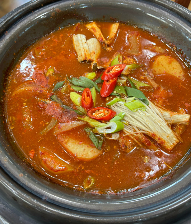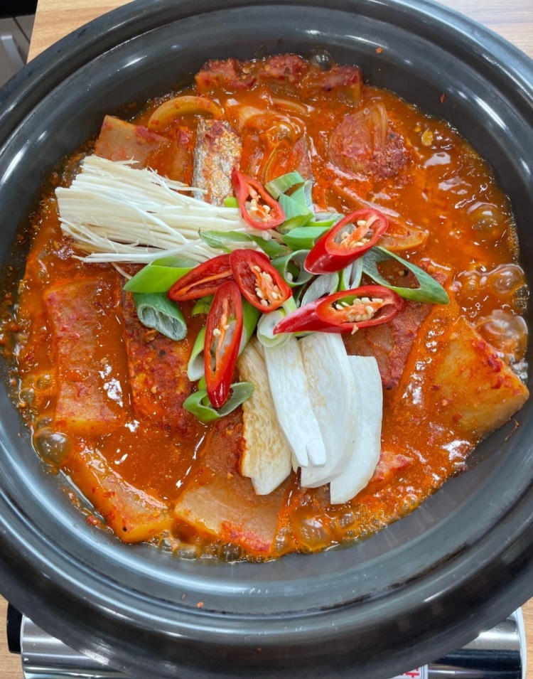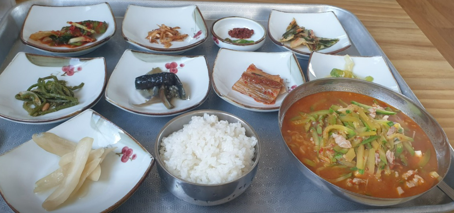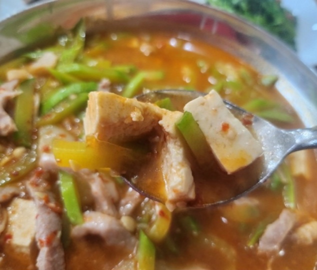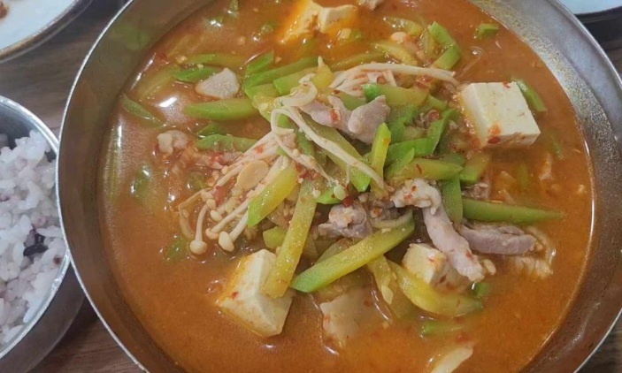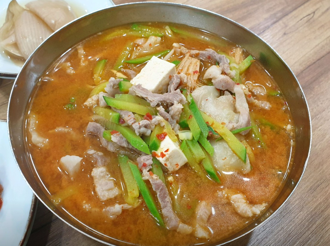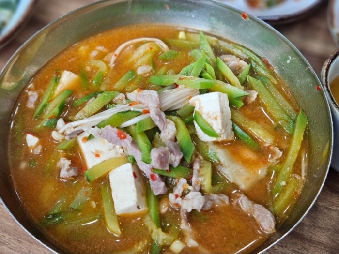 애호박찌개의 국물이 깊고 담백해 밥과 잘 어울렸습니다.