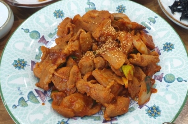 제육볶음의 고기가 부드럽고 양념이 잘 배어 있어 만족스러웠습니다.