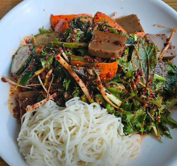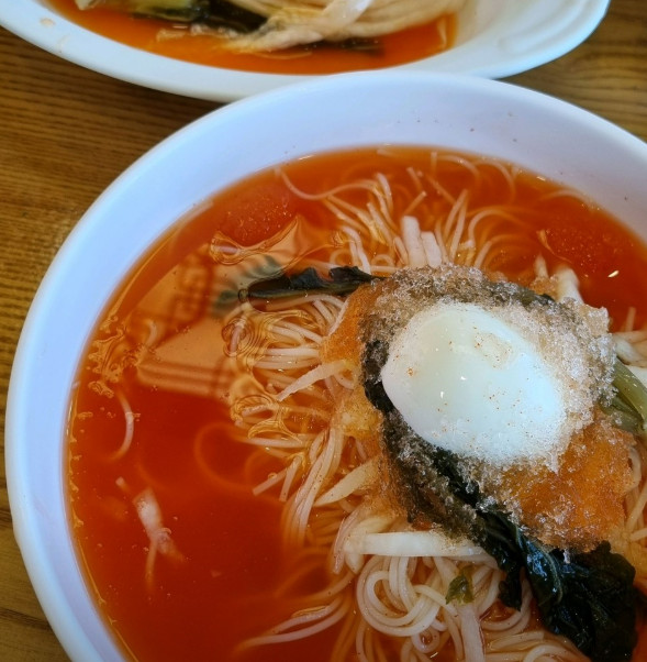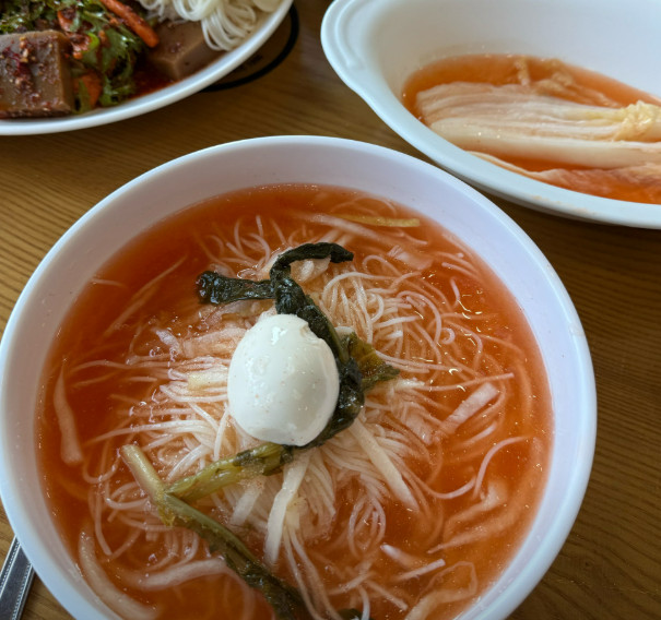 동치미국수의 국물이 시원하고 면발이 쫄깃하여 정말 맛있게 먹었습니다. 반찬도 다양하고 신선하여 만족스러웠습니다.