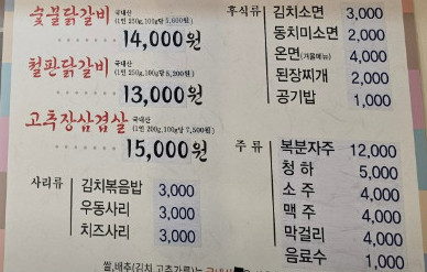 숯불 닭갈비가 부드럽고 양념이 잘 배어 정말 맛있었습니다.