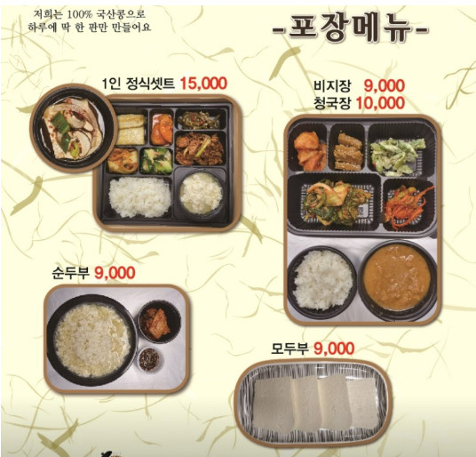 두부 요리를 중심으로 다양한 메뉴를 제공하여 손님들의 선택의 폭을 넓혔습니다. 비지장, 순두부, 청국장과 같은 전통적인 메뉴뿐만 아니라 제육두루치기, 두부조림 등으로 현대적인 입맛도 만족시킵니다. 특히 계절 메뉴로 제공되는 콩국수는 여름철 별미로 큰 사랑을 받고 있습니다.