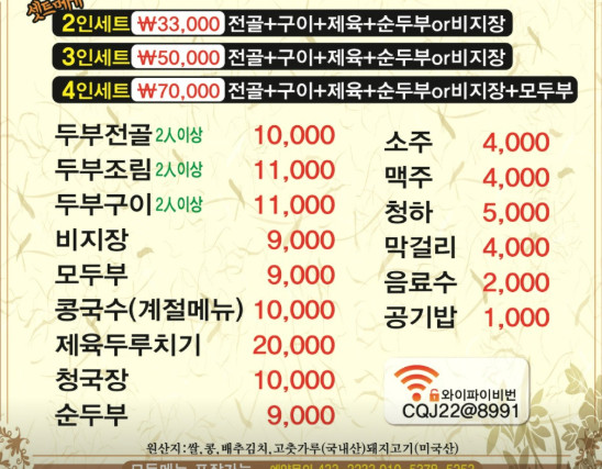 백반기행 두부전골 홍천 맛집의 모든 메뉴는 합리적인 가격으로 제공되며, 푸짐한 양은 단체 손님들에게도 적합합니다. 특히 세트 메뉴는 2인, 3인, 4인으로 구성되어 있어 인원수에 따라 알맞게 선택할 수 있습니다.