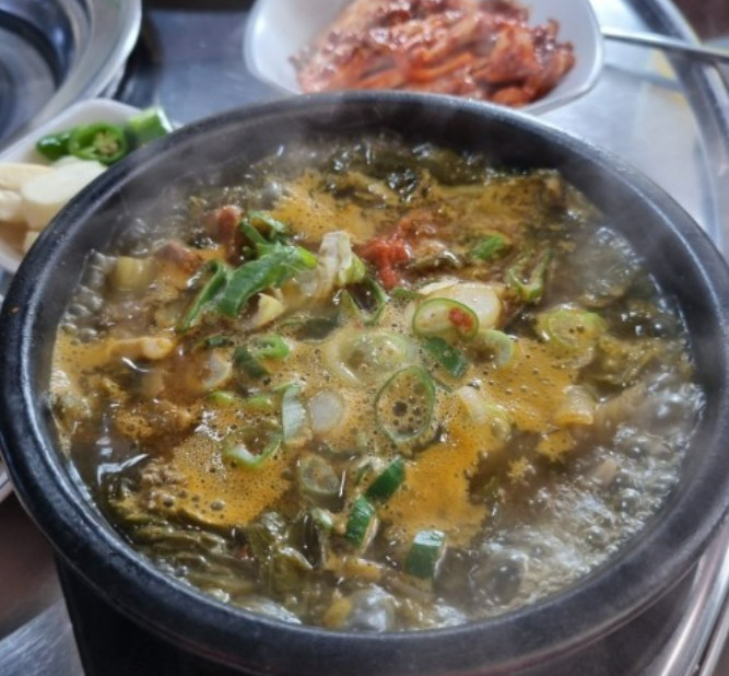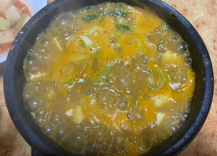 백반기행 박세리 돼지고추장구이 맛집의 청국장은 발효된 콩의 진한 향과 고소한 맛이 어우러진 음식으로, 꾸덕한 질감과 깊은 감칠맛이 특징입니다. 청국장 특유의 구수한 향이 식욕을 돋우며, 함께 나오는 다양한 밑반찬과 곁들여 먹으면 더욱 풍성한 한 끼를 즐길 수 있습니다. 특히, 뜨거운 밥과 함께 청국장을 비벼 먹으면 감칠맛이 배가되어 더욱 깊은 풍미를 느낄 수 있습니다. 청국장은 꾸준한 단골이 많을 정도로 인기 있는 메뉴로, 건강한 한 끼를 원하는 손님들에게 추천할 만한 음식입니다.