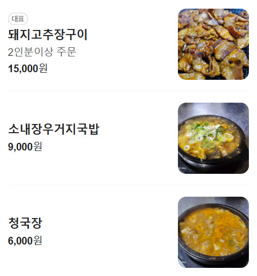 가격 대비 양이 많아서 만족스러웠습니다. 돼지고추장구이는 양념이 매콤달콤해서 밥과 잘 어울렸습니다.