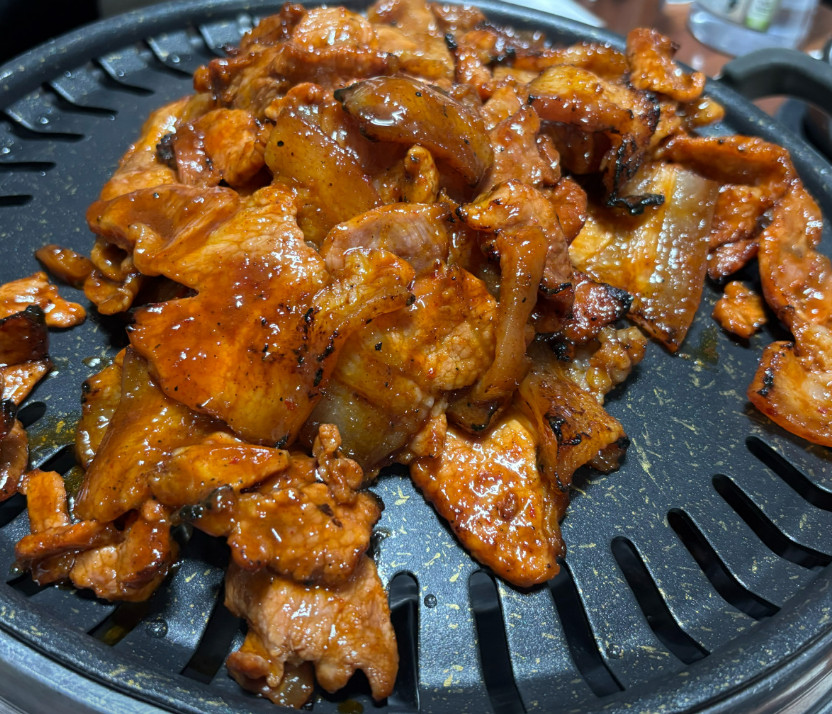 돼지고추장구이가 정말 맛있습니다. 양념이 진하게 배어 있어 한입 먹을 때마다 불향과 감칠맛이 가득 느껴졌습니다.