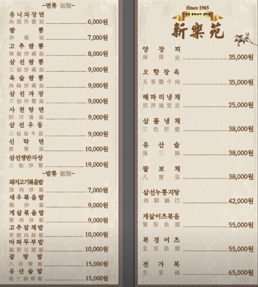 백반기행 성시경 중화요리 맛집의 대표 메뉴 중 하나인 신락면은 깊고 진한 국물 맛과 신선한 재료가 돋보이는 요리입니다. 이외에도 유니짜장, 삼선짬뽕 등 다양한 면 요리가 준비되어 있어 한식과 중식을 조화롭게 즐길 수 있습니다. 특히 신락면은 매콤한 풍미와 조화로운 재료로 입맛을 돋우며, 많은 손님들의 사랑을 받고 있습니다. 면 요리의 선택지가 많아 취향에 따라 골라 즐길 수 있는 것이 특징입니다.