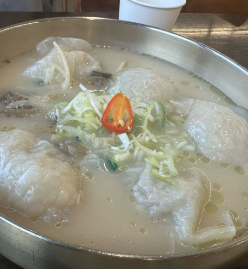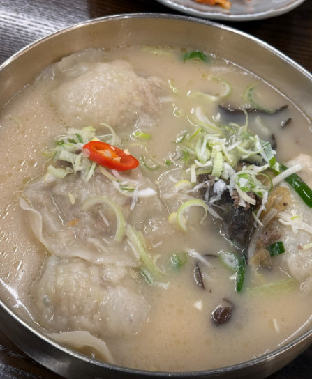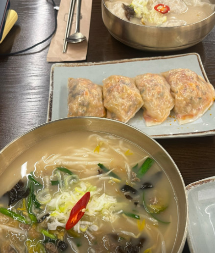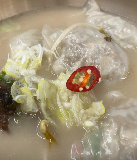 만두피가 얇고 속이 꽉 차 있어서 한 개만 먹어도 든든했습니다. 국물과 함께 먹으니 조화가 정말 좋았습니다.