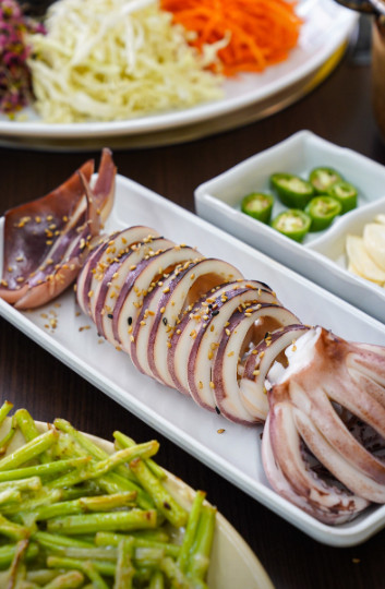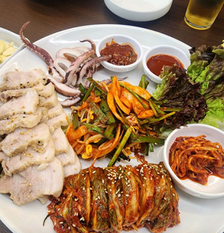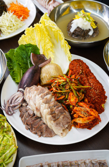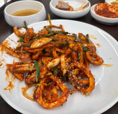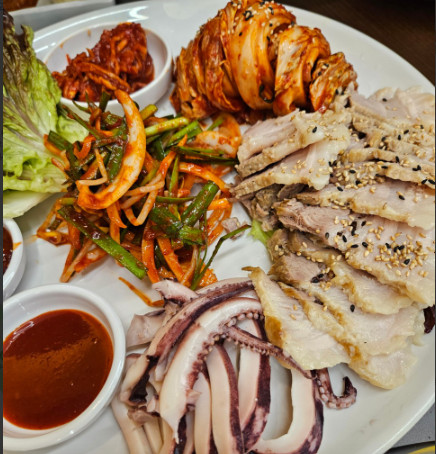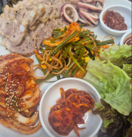 오징어보쌈이 특히 인상적이었습니다. 신선한 오징어와 매콤한 양념이 조화를 이뤄서 별미였습니다.