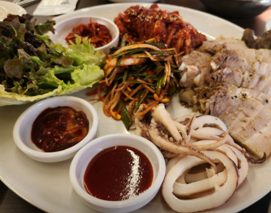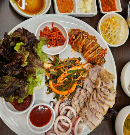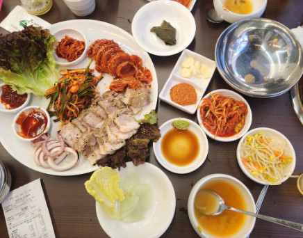 보쌈 김치가 정말 맛있었고, 보쌈 고기도 잡내 없이 부드러웠습니다. 한 상 가득 푸짐하게 나와서 배부르게 먹었습니다.