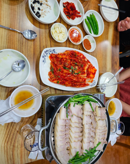 다양한 반찬과 함께 제공되는 생방송투데이 외국인의밥상 굴김치 보쌈 맛집의 보쌈 정식은 푸짐한 한 끼 식사를 원하는 분들에게 제격입니다. 김치와 함께 곁들여 먹으면 더욱 맛이 살아나며, 고기의 풍미와 잘 어우러져 깊고 담백한 맛을 느낄 수 있습니다.