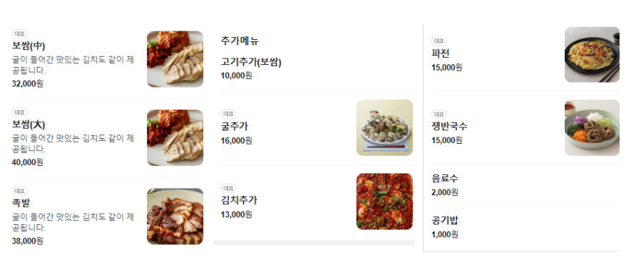 생방송투데이 외국인의밥상 굴김치 보쌈 맛집의 대표메뉴