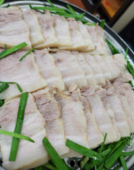 생방송투데이 외국인의밥상 굴김치 보쌈 맛집의 한 접시 가득 담긴 보쌈과 족발은 양이 넉넉해 두세 명이 함께 나눠 먹기에도 충분합니다. 가격 대비 푸짐한 양과 정성 가득한 맛 덕분에 많은 손님들이 만족하며 찾는 곳입니다.