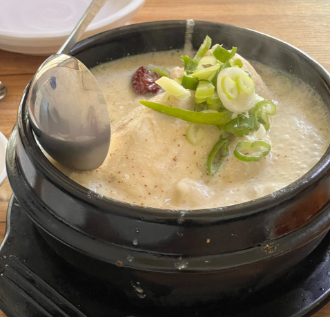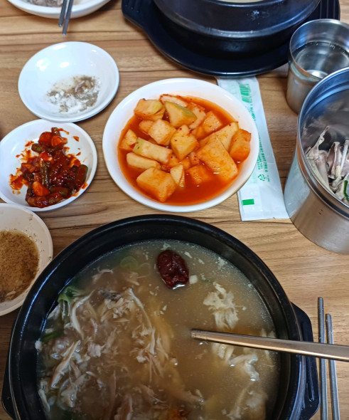 닭고기가 부드러워 숟가락으로 쉽게 발라 먹을 수 있어 편했습니다. 한방 재료가 잘 어우러져 국물도 깔끔하고 맛있었습니다.