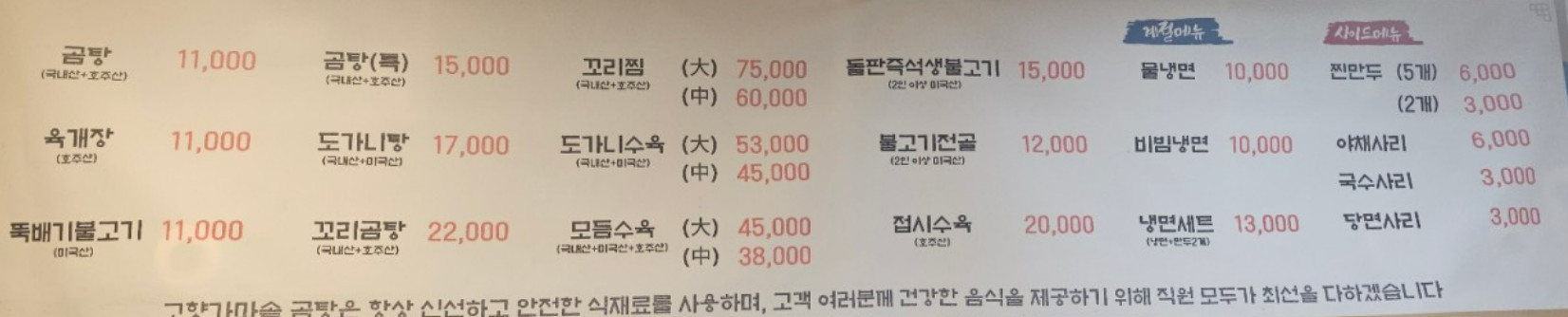 곰탕 외에도 도가니탕, 꼬리곰탕, 꼬리찜 같은 고기 요리가 다양해 취향에 따라 선택할 수 있습니다. 특히 꼬리찜은 부드러운 고기와 매콤한 양념이 어우러져 별미로 사랑받고 있습니다. 가족 단위 손님이나 회식 메뉴로도 인기가 많습니다.