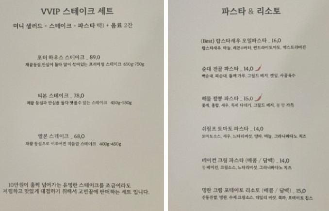 스테이크가 정말 부드럽고 육즙이 풍부해서 입안에서 사르르 녹는 느낌이었습니다. 고기 본연의 풍미를 제대로 느낄 수 있었어요.