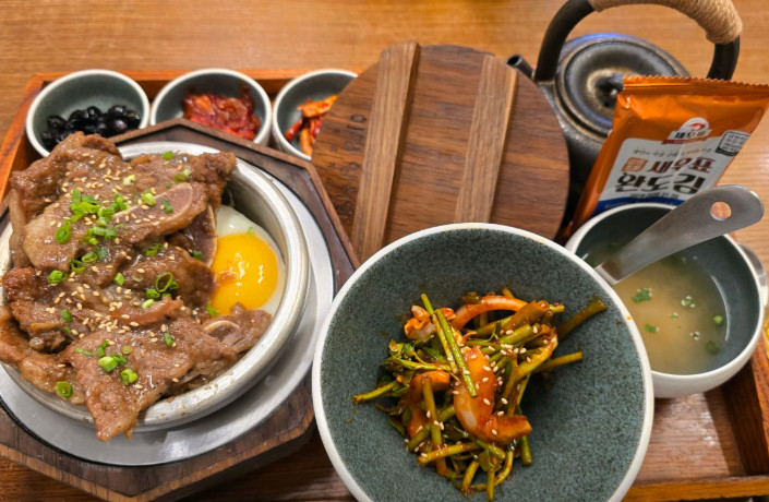 외할머니 LA갈비 솥밥은 부드러운 LA갈비가 넉넉하게 올라간 메뉴로, 특제 양념에 재운 갈비가 달달하면서도 짭조름한 맛이 자랑입니다. 촉촉하게 구워진 갈비를 밥과 함께 먹으면 특유의 풍미가 더욱 살아나며, 한입 베어 물 때마다 육즙이 가득 느껴집니다. 든든한 한 끼 식사로 제격이며, 남녀노소 모두가 좋아할 만한 맛입니다.