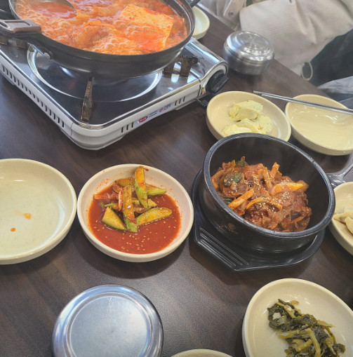 김치찌개 국물이 깊고 칼칼해서 계속 먹게 됩니다. 생고기가 신선해서 씹을 때마다 고소한 맛이 납니다.