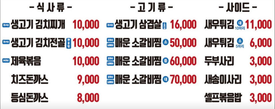 생생정보 생고기김치찌개 인천 맛집의 대표메뉴