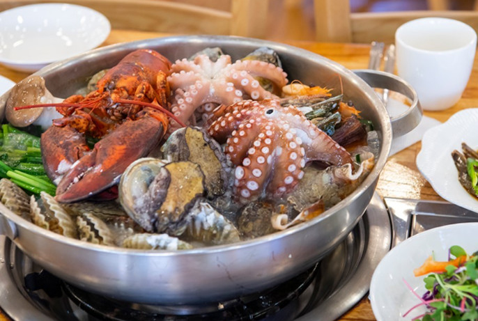 해물탕 국물이 정말 깊고 시원했습니다. 바닷가재와 전복이 들어있어 고급스러운 맛을 느낄 수 있었어요.