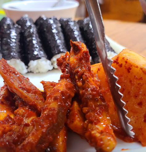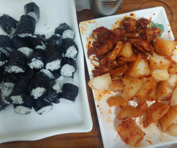 오징어무침이 쫄깃하면서도 적당히 매콤해서 김밥과 같이 먹으니 감칠맛이 배가 됐습니다.