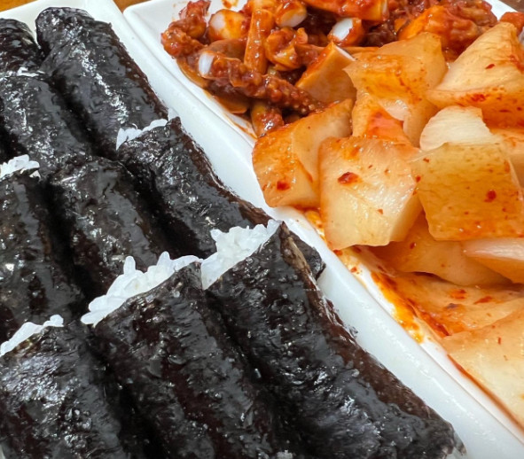 무김치도 그렇고 어묵볶음도 너무 맛있었어요. 특히 어묵볶음이 부드러우면서도 간이 잘 배어 있어서 김밥과 함께 먹으니 좋았습니다.