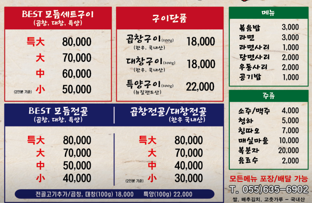 포장과 배달이 가능해 집에서도 편하게 곱창을 즐길 수 있다는 점이 좋았습니다.