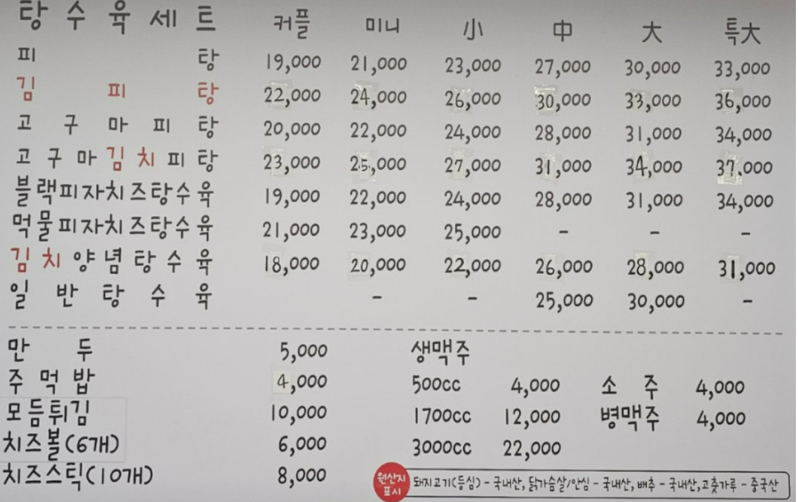 전현무계획2 공주 김피탕 맛집의 또 다른 특별함은 넉넉한 양과 다양한 사이즈 옵션입니다. 커플, 미니, 소, 중, 대, 특대 사이즈까지 준비되어 있어 1인 식사부터 단체 모임까지 모두 만족시킬 수 있습니다. 특히, 특대 사이즈는 푸짐한 양과 다양한 재료로 구성되어 있어 단체 손님들에게 인기가 많습니다. 이러한 점은 손님들에게 선택의 폭을 넓혀주며, 합리적인 가격으로 풍성한 식사를 즐길 수 있는 기회를 제공합니다.