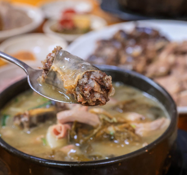 전현무계획2 양평 시래기 순대국 맛집에서 제공되는 순대는 모두 토종순대를 사용하여 깊고 진한 풍미를 자랑합니다. 일반적인 순대와는 다른 독특한 맛을 경험할 수 있으며, 내장과 함께 먹으면 더욱 조화로운 맛을 느낄 수 있습니다. 모든 재료는 신선하게 준비되어 식사 내내 최고의 맛을 유지합니다.