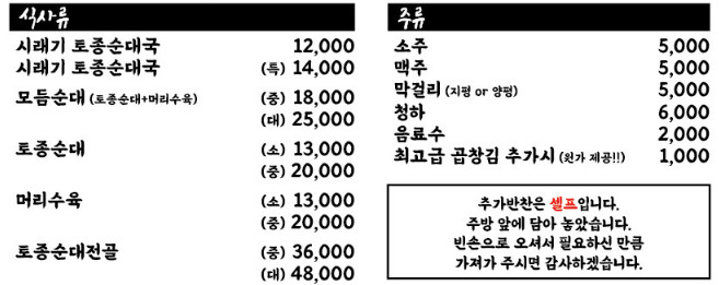 합리적인 가격에 넉넉한 양을 자랑하는 메뉴들이 이곳의 또 다른 매력입니다. 소, 중, 대로 나눠진 메뉴 구성 덕분에 혼자서도, 여럿이서도 만족스러운 식사가 가능합니다. 푸짐하게 제공되는 모듬순대와 전골은 가족 단위 손님들에게 특히 사랑받고 있습니다.