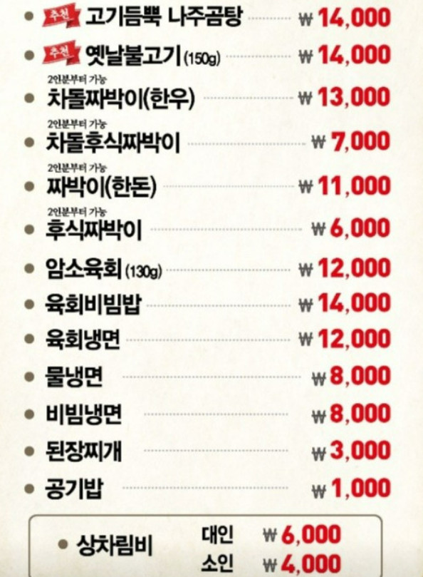 차돌 짜박이, 육회비빔밥 등 고품질 메뉴를 저렴한 가격에 맛볼 수 있어 남녀노소 누구나 만족할 수 있습니다.