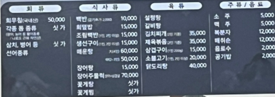 한국인의밥상 고흥군 삼치 김원태선장 식당의 메뉴