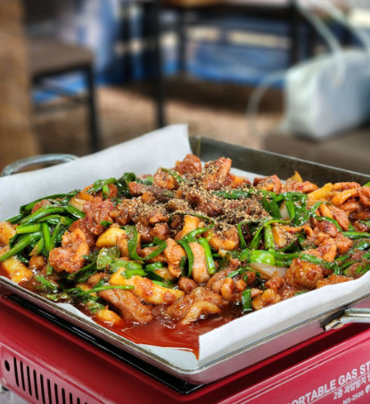 매운 오리주물럭은 자극적이지 않으면서도 감칠맛이 좋았습니다. 밥이랑 같이 먹으면 딱 좋을 맛이었습니다.