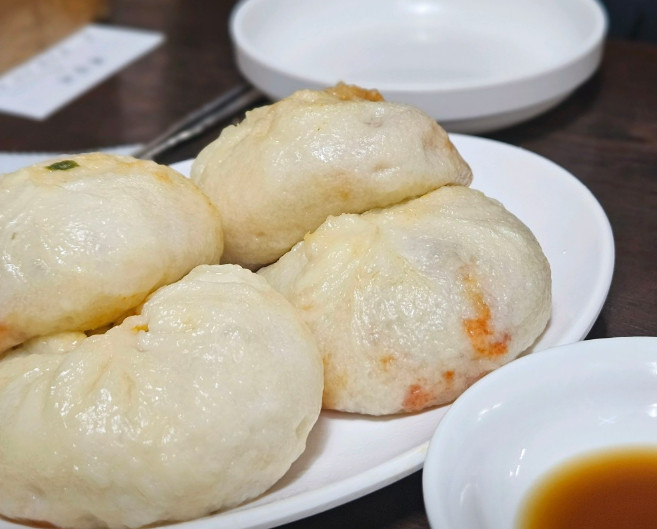 새우만두는 새우살이 탱글하게 씹혀 식감이 살아 있고, 고기만두보다 담백해서 부담 없이 먹을 수 있었습니다.